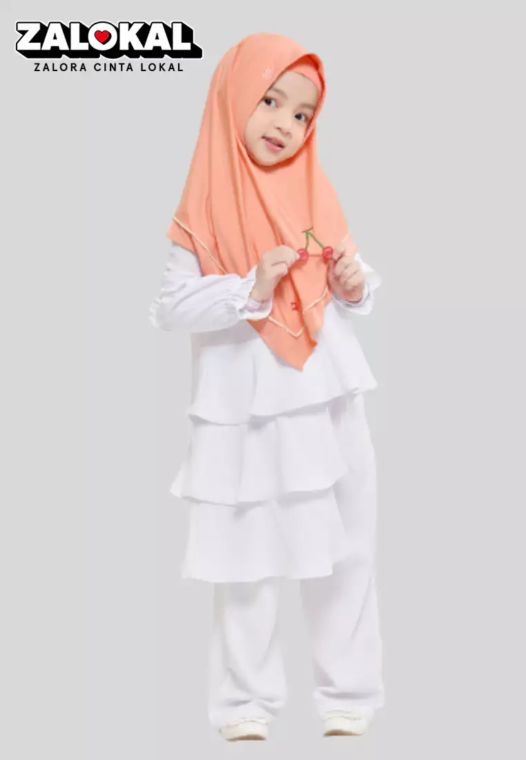 Rabbani - Setelan Baju Anak Perempuan Bani Batuta Khimar Megumi Putih