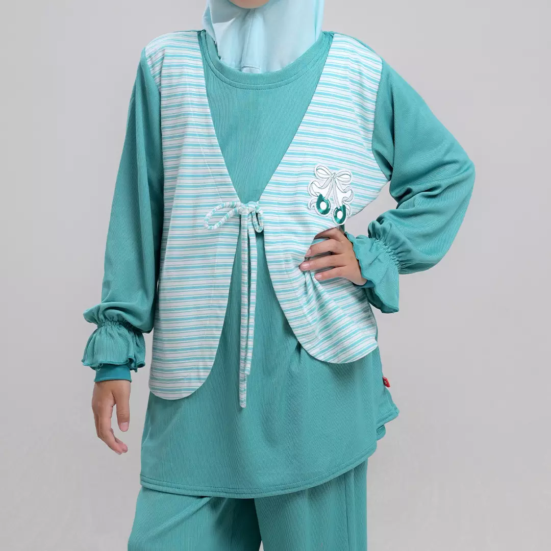 Rabbani - Setelan Baju Anak Perempuan Lengan Panjang Bani Batuta Sporty Maisie Exclusive - Light Tosca