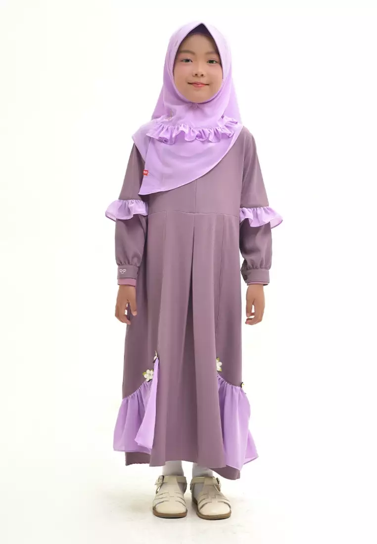 Rabbani - Setelan Gamis Dress Muslim Anak Bani Batuta Khimar Amanda Exclusive - Purple Lilac