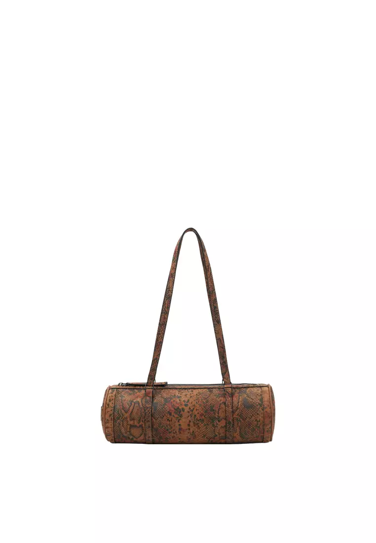 Barrel Baguette Bag - Snake Embossed Caramel
