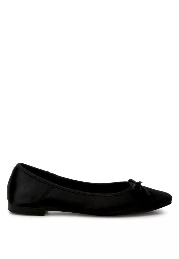 Balerina Hiasan Busur Satin dalam Warna Hitam