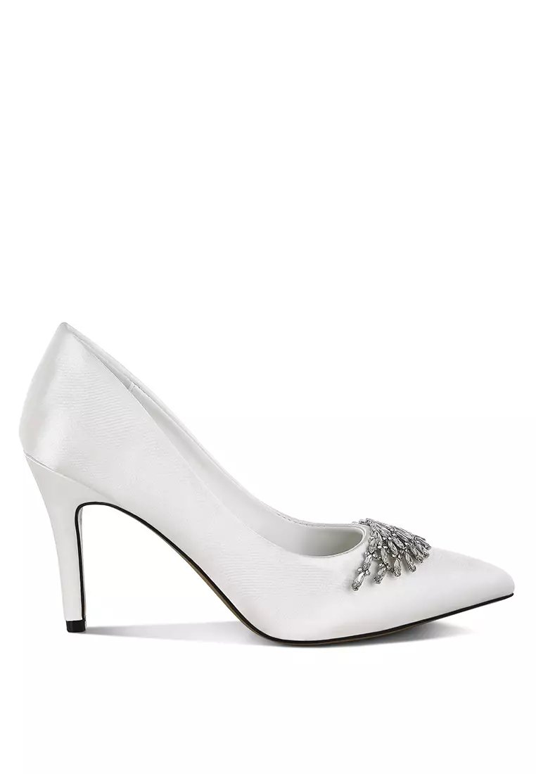Bros Berlian Imitasi Detail Satin Pumps Warna Putih