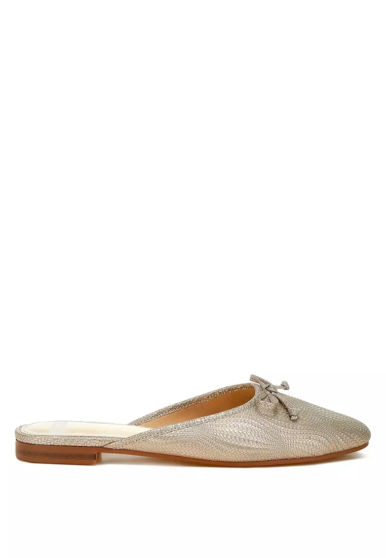 Keledai Slip-On Busur Pesta dalam Warna Emas