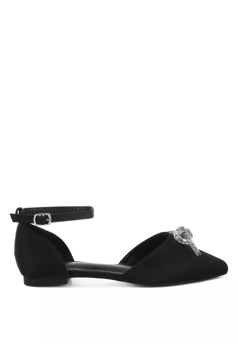 Sandal Datar Pita Detail Berlian Imitasi Warna Hitam
