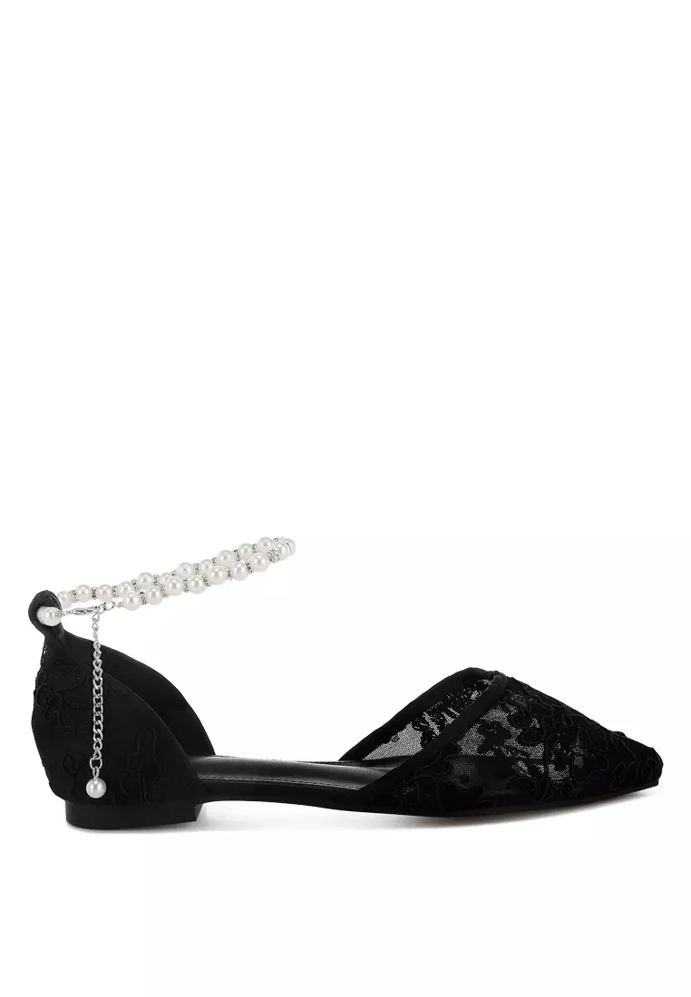 Sandal Datar Tali Mutiara & Berlian Imitasi Warna Hitam