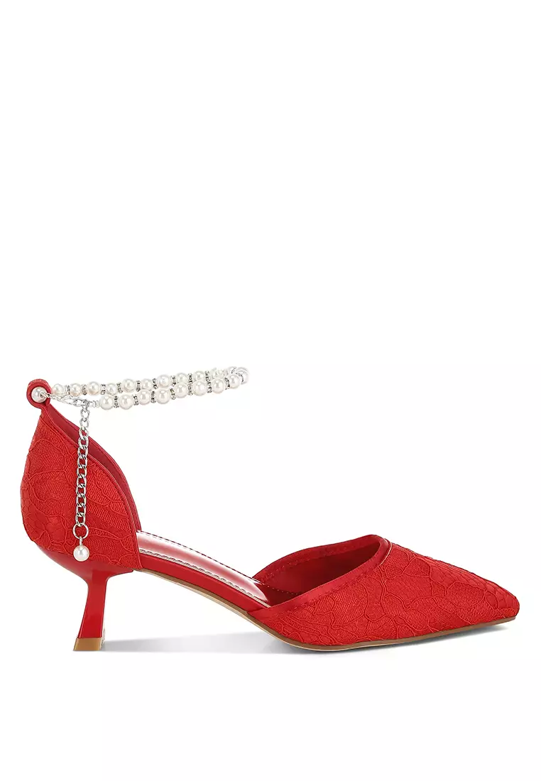 Rag & CO.Sandal hak anak kucing berenda warna merah2540969.00