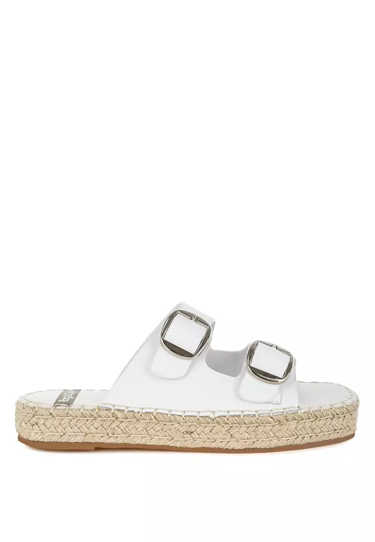 Sepatu Espadrilles Ujung Persegi Kulit Asli Lembut Warna Putih