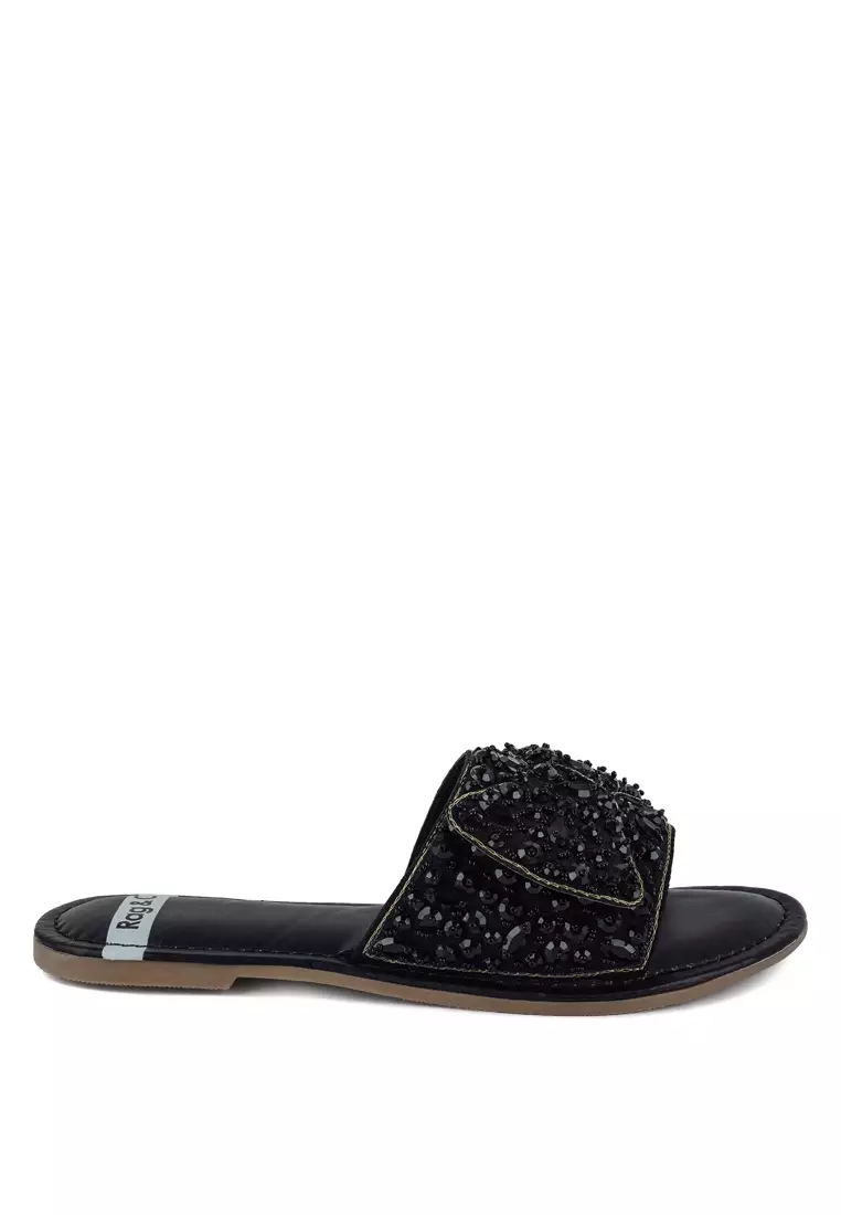 Sepatu Flat Berhias Pita Besar Warna Hitam