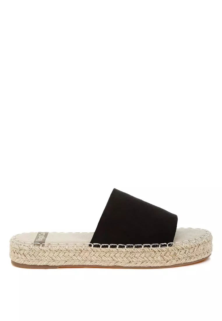 Sepatu Flat Espadrille Kulit Lembut Asli Warna Hitam
