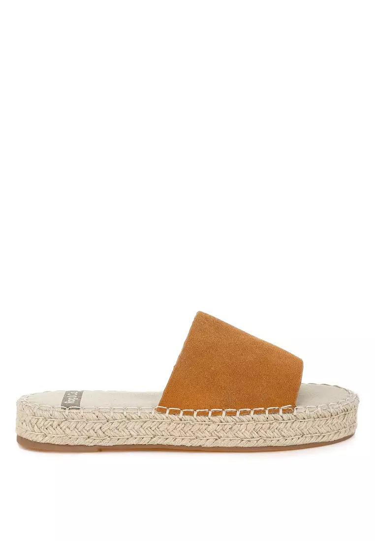 Sepatu Flat Espadrille Kulit Lembut Asli Warna Tan Muda