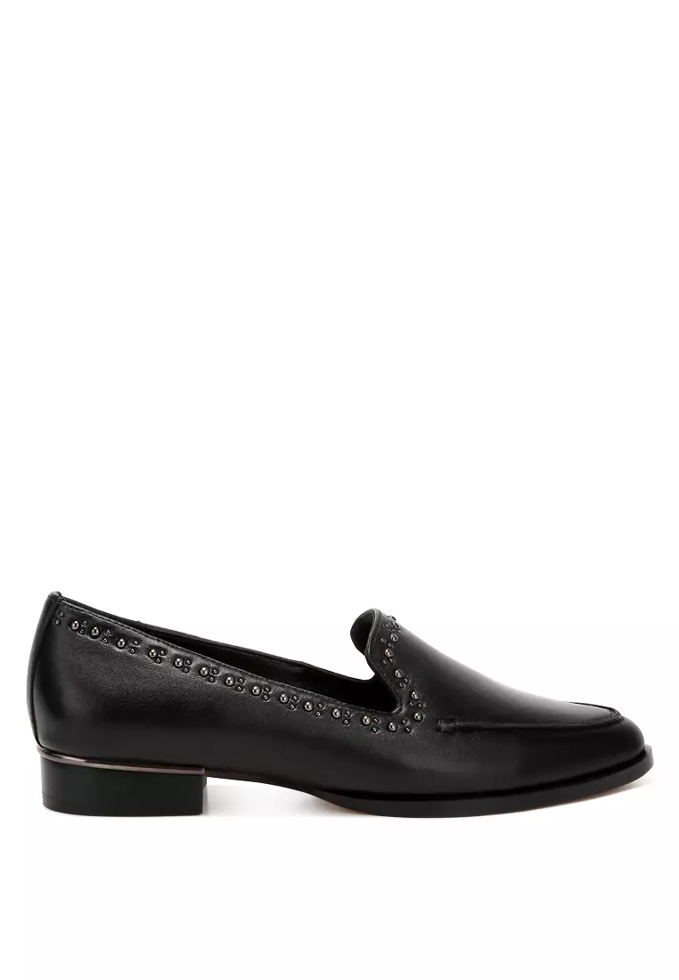 Sepatu Kulit Berhiaskan Kancing dalam Warna Hitam