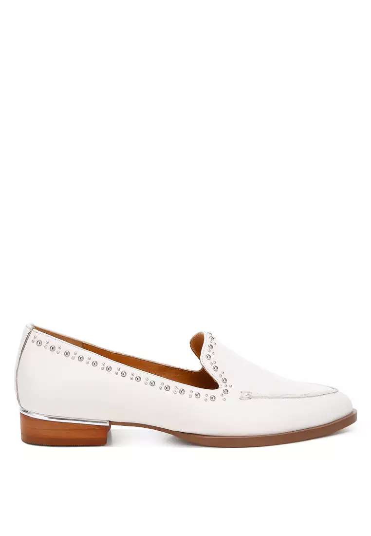 Sepatu Kulit Berhiaskan Kancing dalam Warna Off White