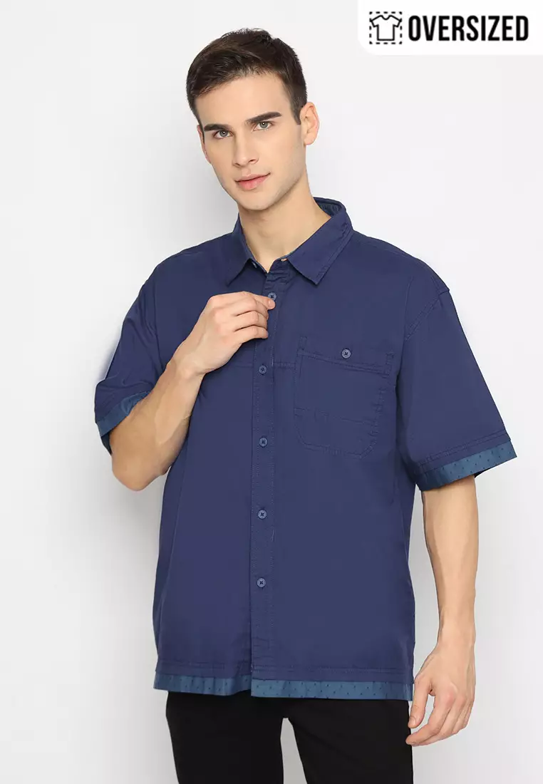 RBJ Kemeja Kombi Oversized Light Navy Pria