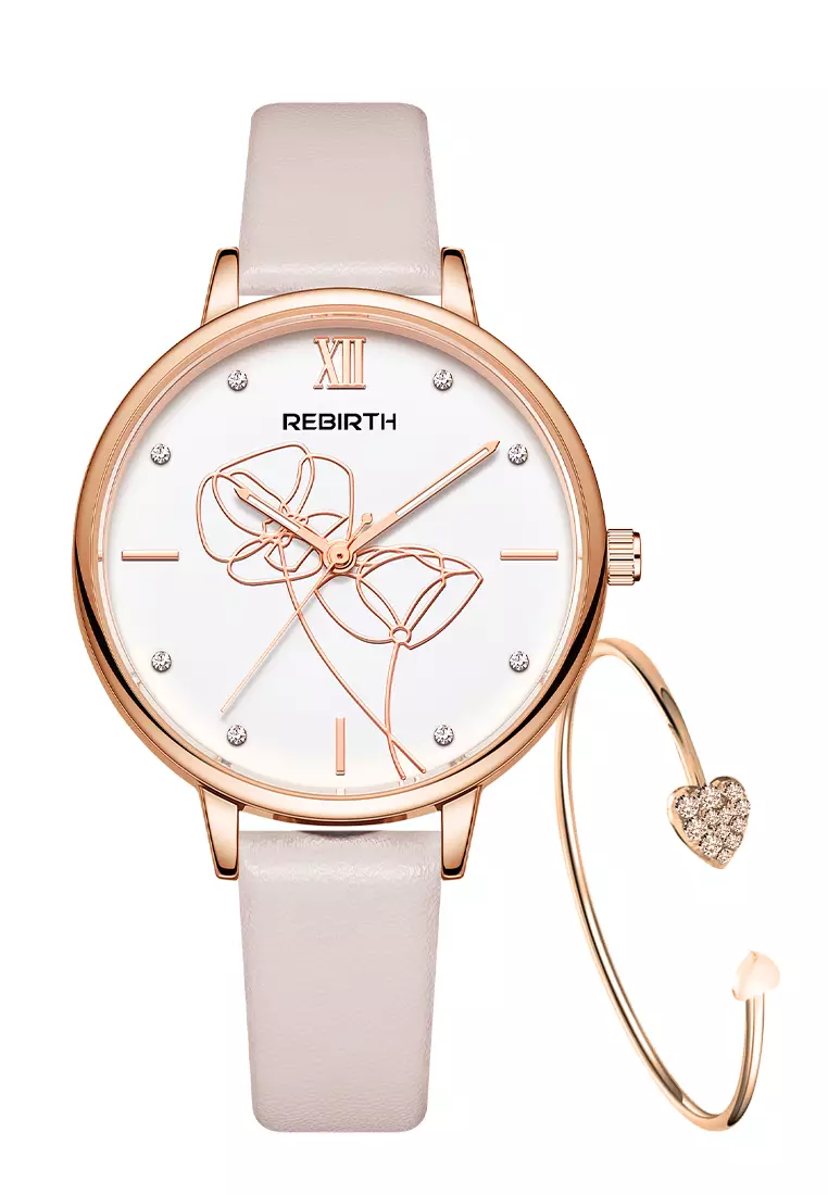 Rebirth WatchJam Tangan Wanita Anggun Tali Kulit Display Kuarsa Tahan Air Jam Wanita Mode Jam Tangan Cewek pinkflower680000.00114000.00