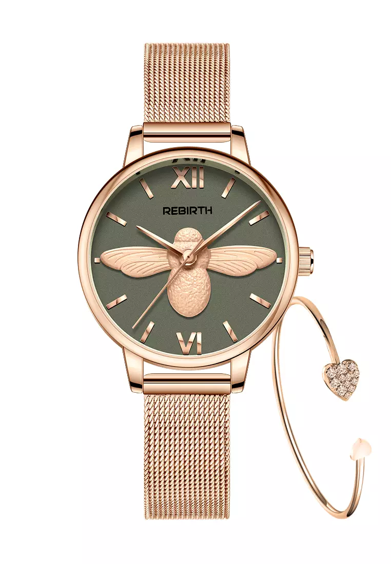 Jam Tangan Wanita Bisnis Pretty 3D Bee Mesh 3ATM Anti Air Analog