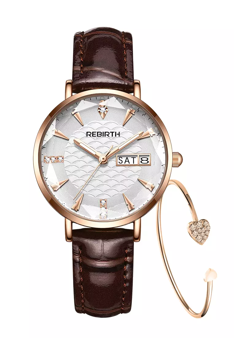 Rebirth WatchJam Tangan Wanita Tahan Air Tali Kulit Jam Wanita Kuarsa Santai Mode Jam Tangan Cewek brownwhite980000.00171000.00