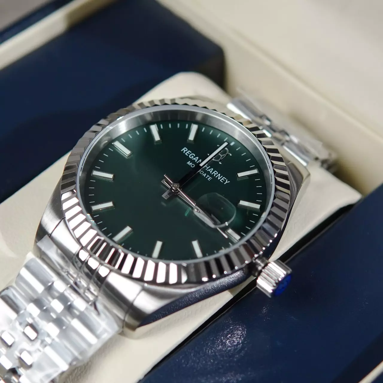 Jam Tangan REGAN HARNEY RH 012-04 MONODATE GREEN STAINLESS STEEL WATCH 100% ORIGINAL - OS