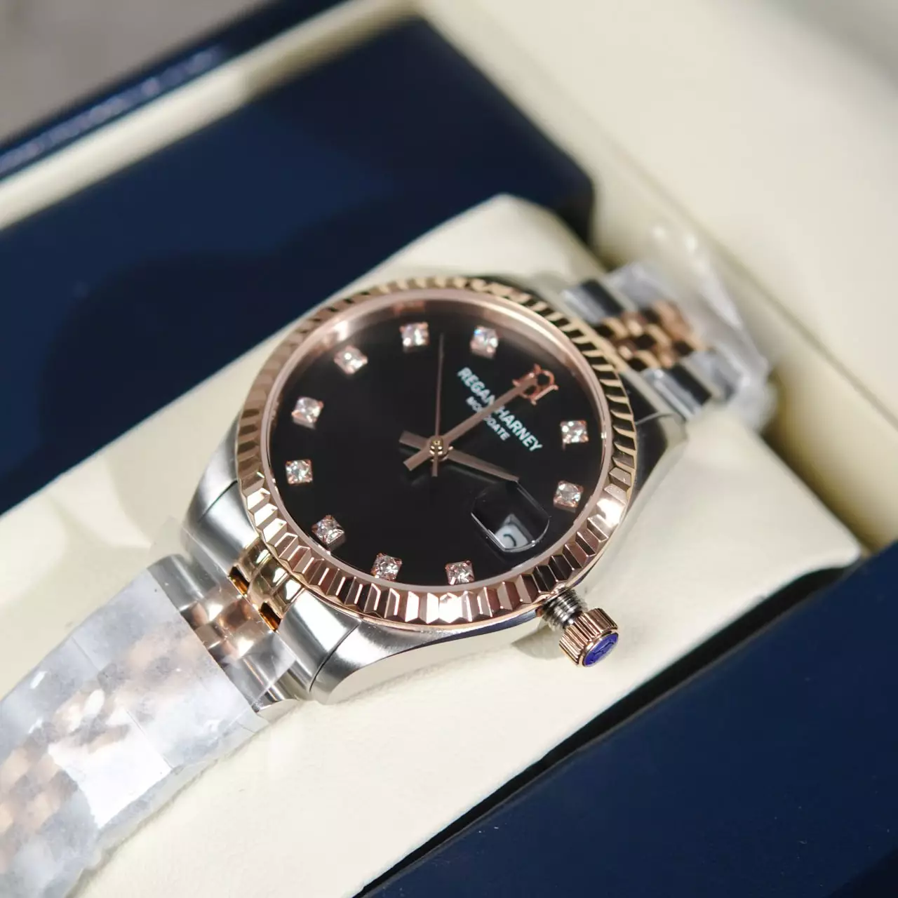 Jam Tangan REGAN HARNEY RH 013-02 LADY MONODATE BLACK STAINLESS STEEL WATCH 100% ORIGINAL - OS