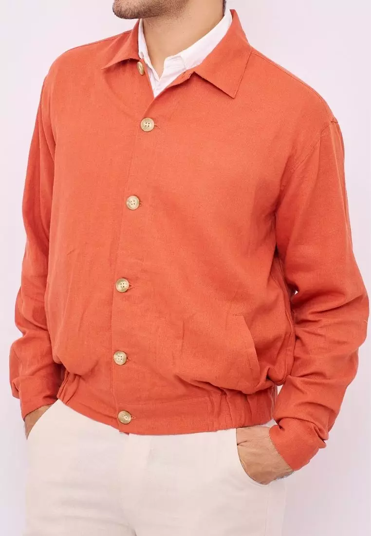 Aneto Jaket Bomber Pria Linen Warna Terracotta | Linen Bomber Jacket Men Terracotta