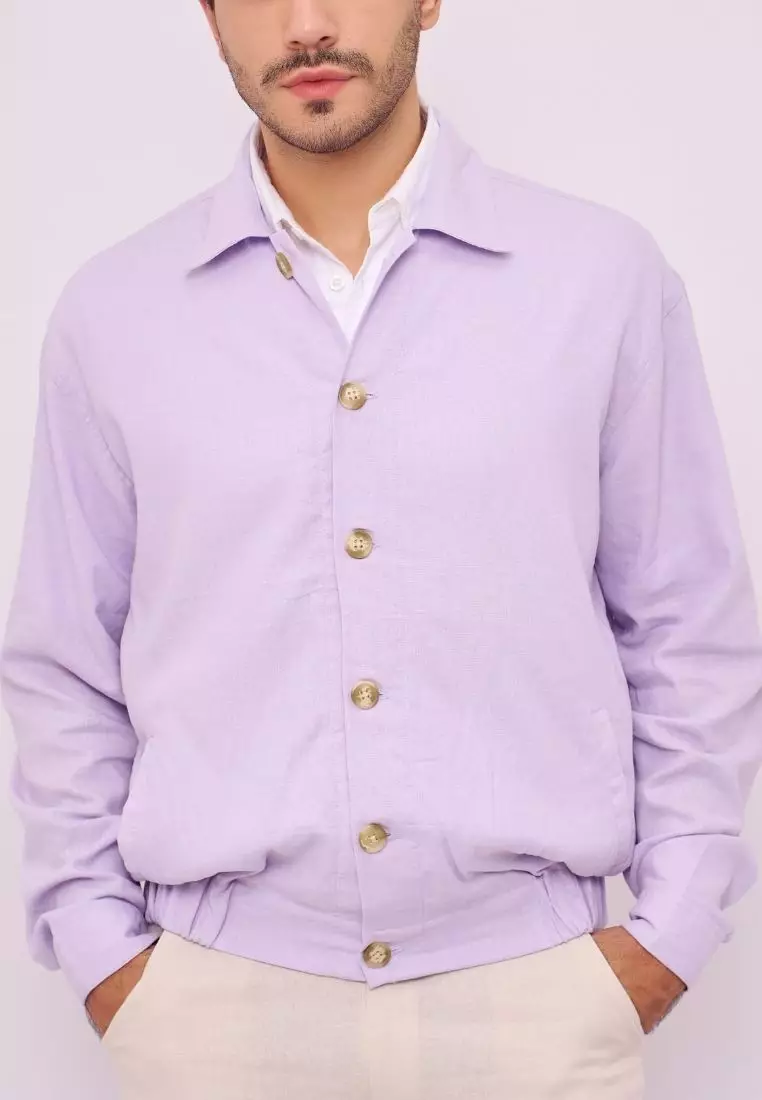 Aneto Jaket Bomber Pria Linen Warna Ungu Muda | Linen Bomber Jacket Men Lilac