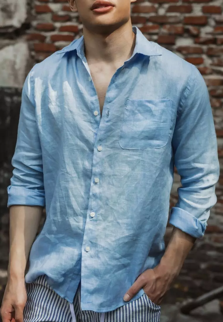 RemedyAqua Blue Kemeja Linen Lengan Panjang Pria Biru | Linen Long Sleeve Shirt Men Blue549000.00