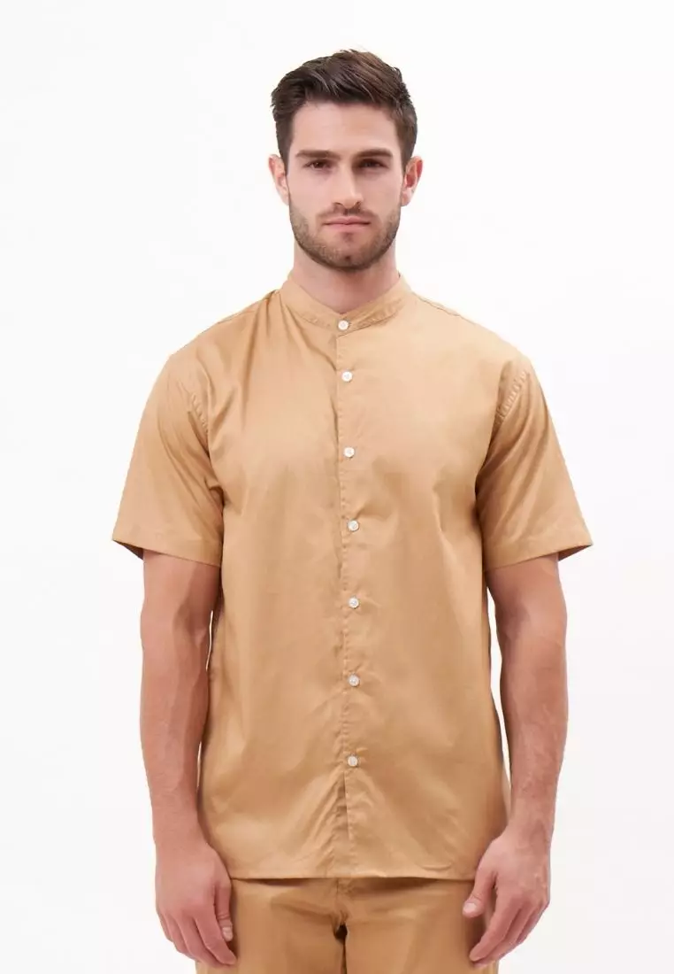 Bazel Kemeja Pendek Pria Katun Organik Mocca | Organic Cotton Short Sleeves Shirt Men Mocca