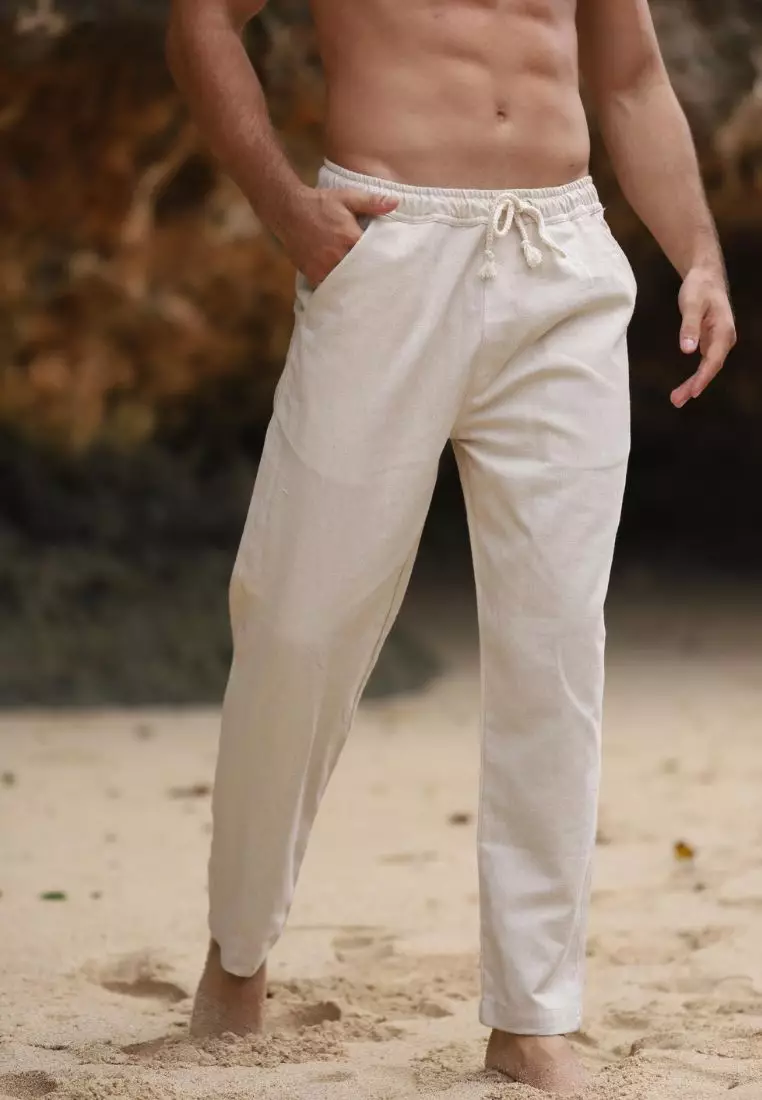 Coconut Celana Panjang Linen Pria Cream | Linen Long Pants Men Cream