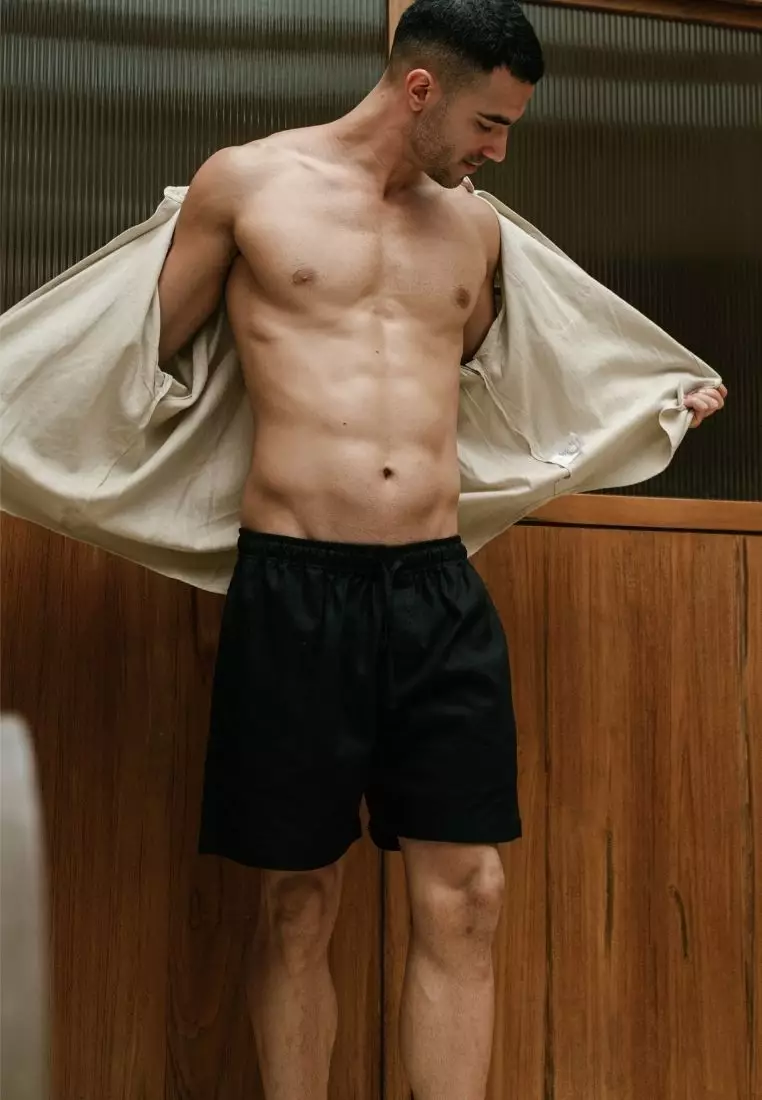Elnido Celana Pendek Pantai Linen Pria Hitam | Linen Beach Shorts Men Black