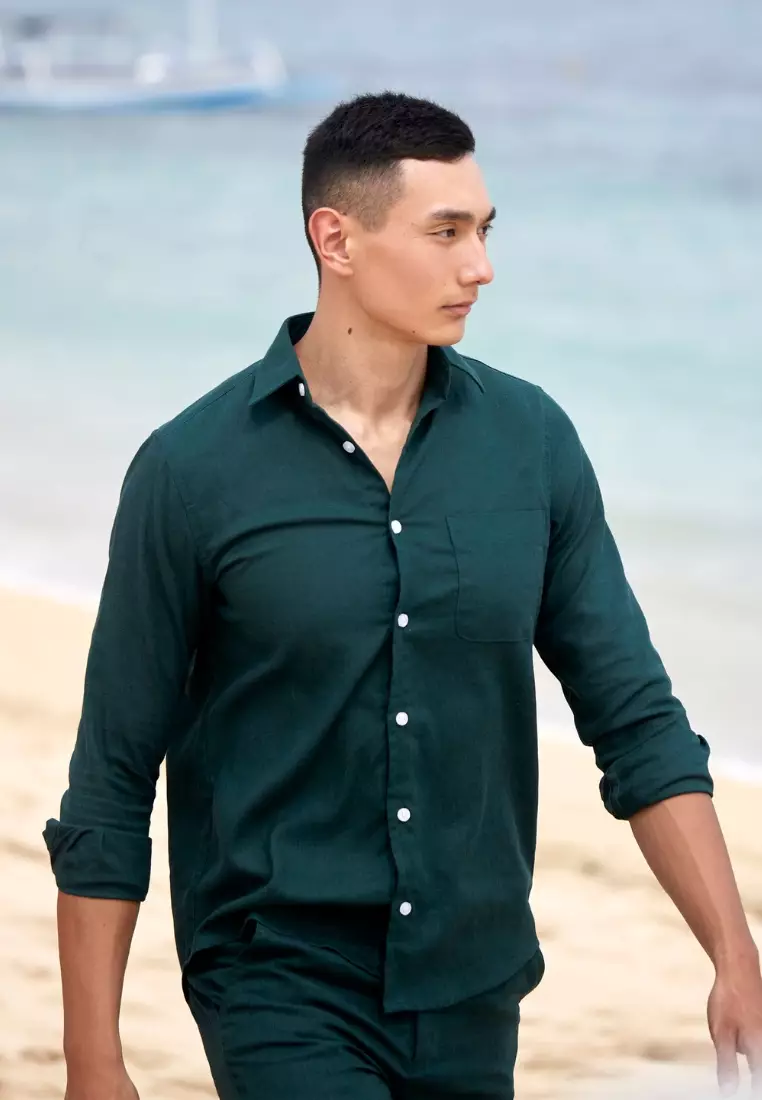 Emerald Kemeja Linen Pria Lengan Panjang Hijau | Long Sleeves Linen Shirt Men Green