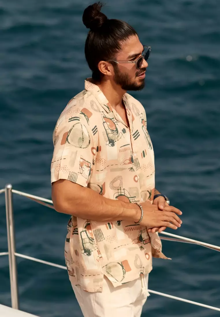 Hawai Kemeja Rayon Lengan Pendek Pria Krem Motif | Rayon Short Sleeve Shirt Man Patterned Cream