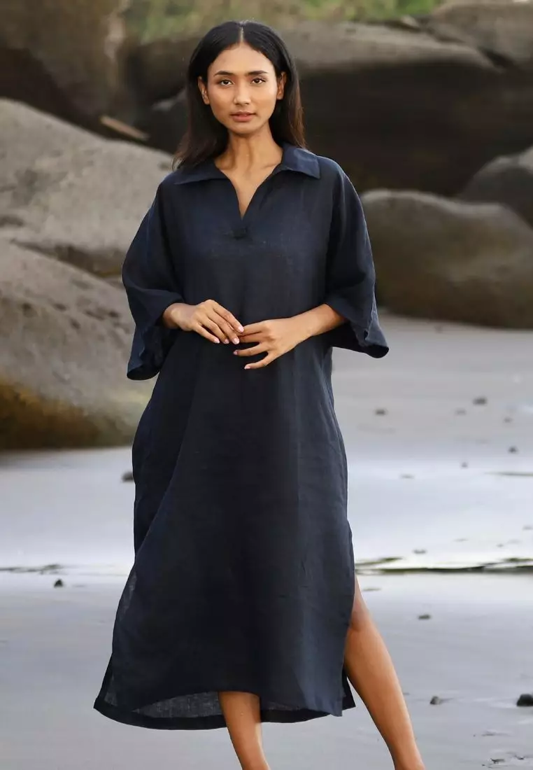 RemedyKemer Dress Kaftan Linen Wanita Blue Black | Linen Kaftan Dress Women Blue Black599000.00299500.00