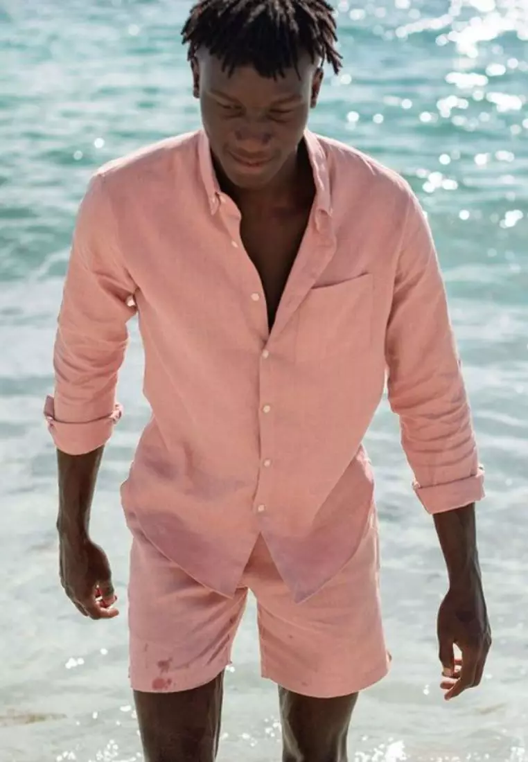 Lona Kemeja Linen Lengan Panjang Pria Salem | Linen Long Sleeve Shirt Men Peach
