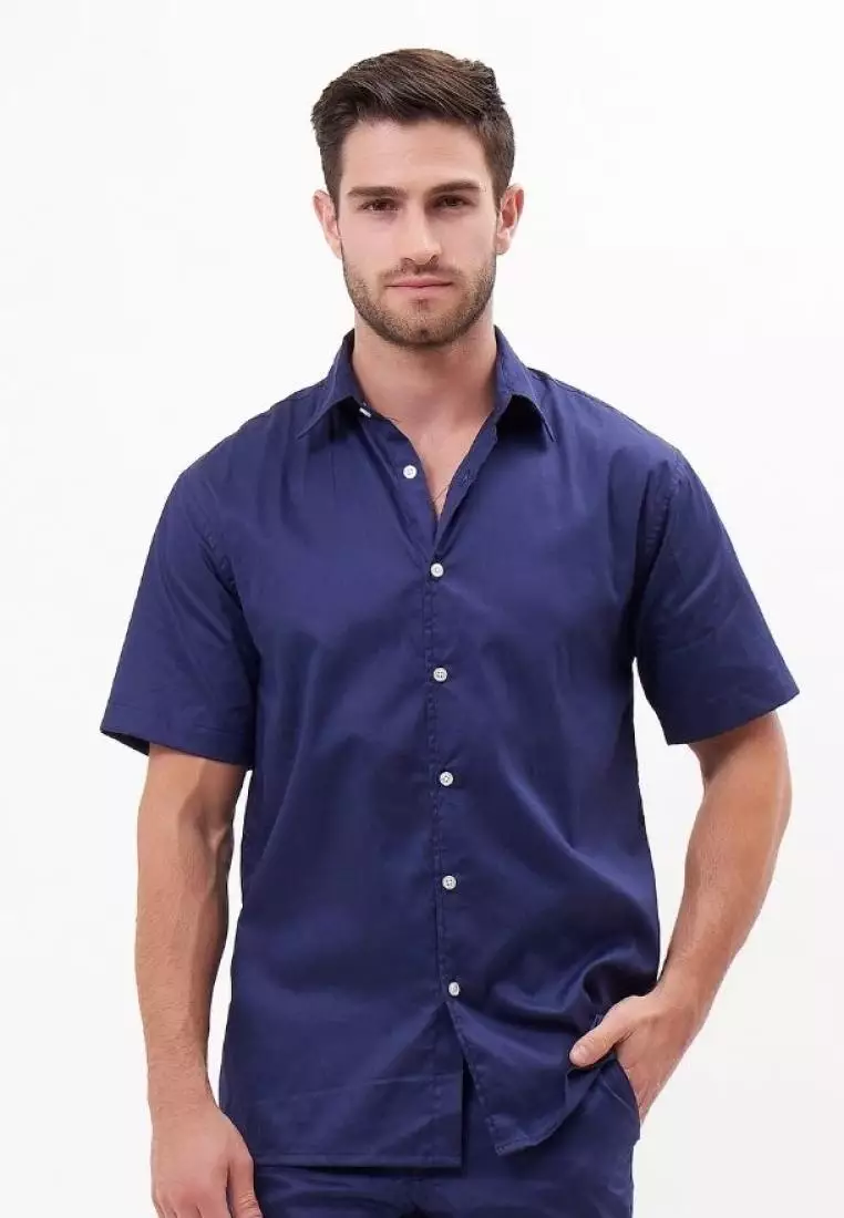 Luca Kemeja Pendek Pria Katun Organik Navy | Organic Cotton Short Sleeves Shirt Men Navy