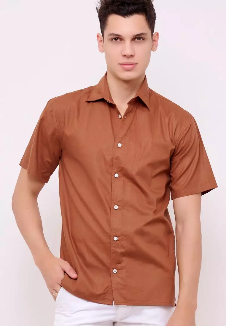 Luca Kemeja Pendek Pria Katun Organik Wood Coklat | Organic Cotton Short Sleeves Shirt Men Brown