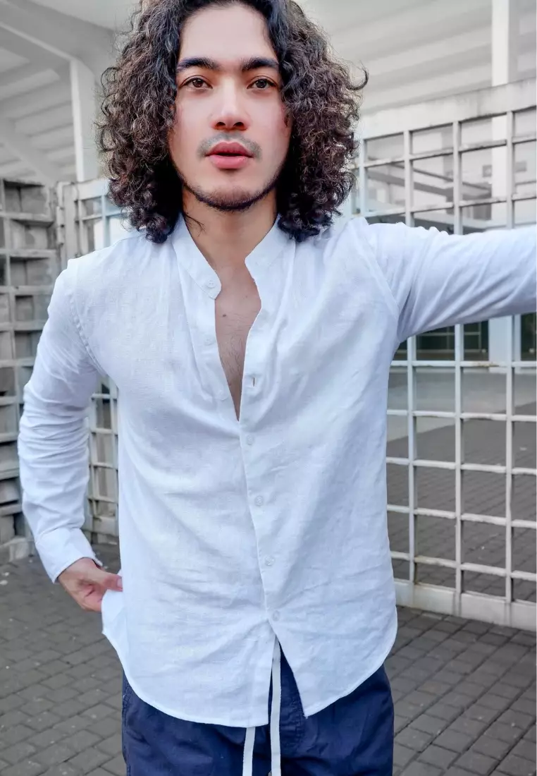 Marakesh Kemeja Linen Pria Lengan Panjang Putih | Long Sleeves Linen Shirt Men White