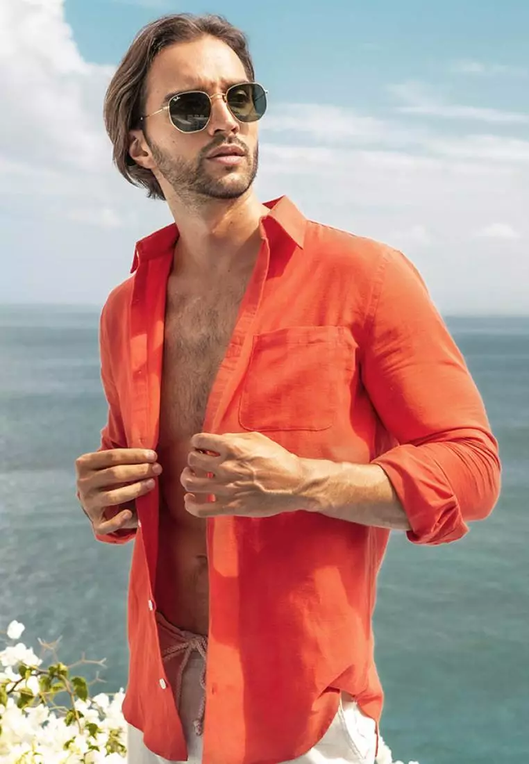 Morgat Kemeja Linen Lengan Panjang Pria Orange | Linen Long Sleeve Shirt Men Orange