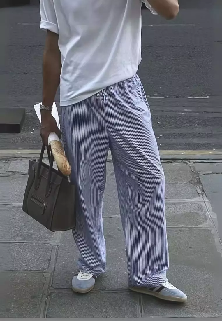Pablo Cobalt Celana Panjang Baggy Linen Pria Abu Garis | Linen Baggy Pants Men Striped Grey