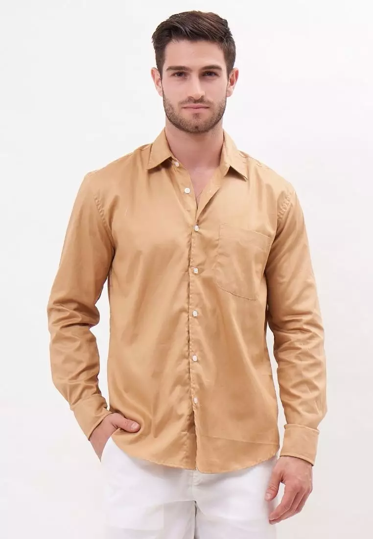 Palma Kemeja Panjang Pria Katun Organik Mocca | Organic Cotton Long Sleeves Shirt Men Mocca