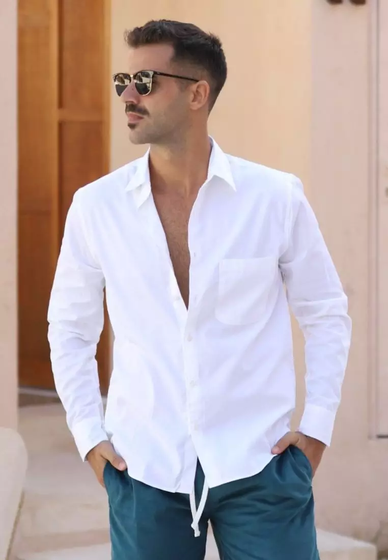 Palma Kemeja Panjang Pria Katun Organik Putih | Organic Cotton Long Sleeves Shirt Men White