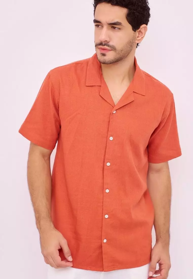Ruby Kemeja Linen Lengan Pendek Pria Terracotta | Linen Short Sleeve Shirt Men Terracotta