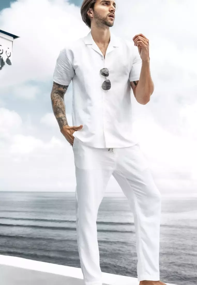 Uluwatu Set Kemeja Celana Linen Pria Putih | Linen Set Men White