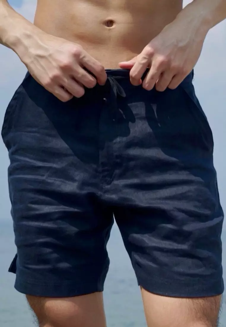 Ureki Celana Pendek Linen Pria Hitam Kebiruan | Linen Short Pants Blue Black