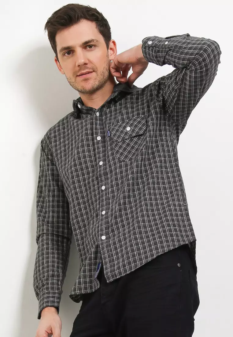 Kemeja Flanel Motif Kotak-Kotak Lengan Panjang + Hoodie 2972J04