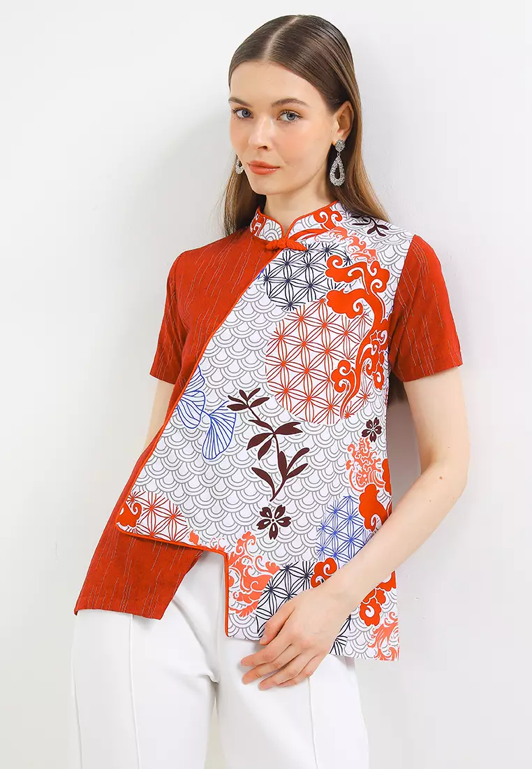 Blouse Atasan Batik Wanita Shanghai Zhea Red Lengan Pendek