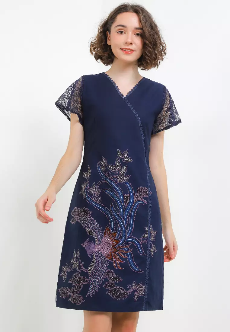 Dress Wanita Bodyfit Batik Furing Lining Firanza Blue Navy