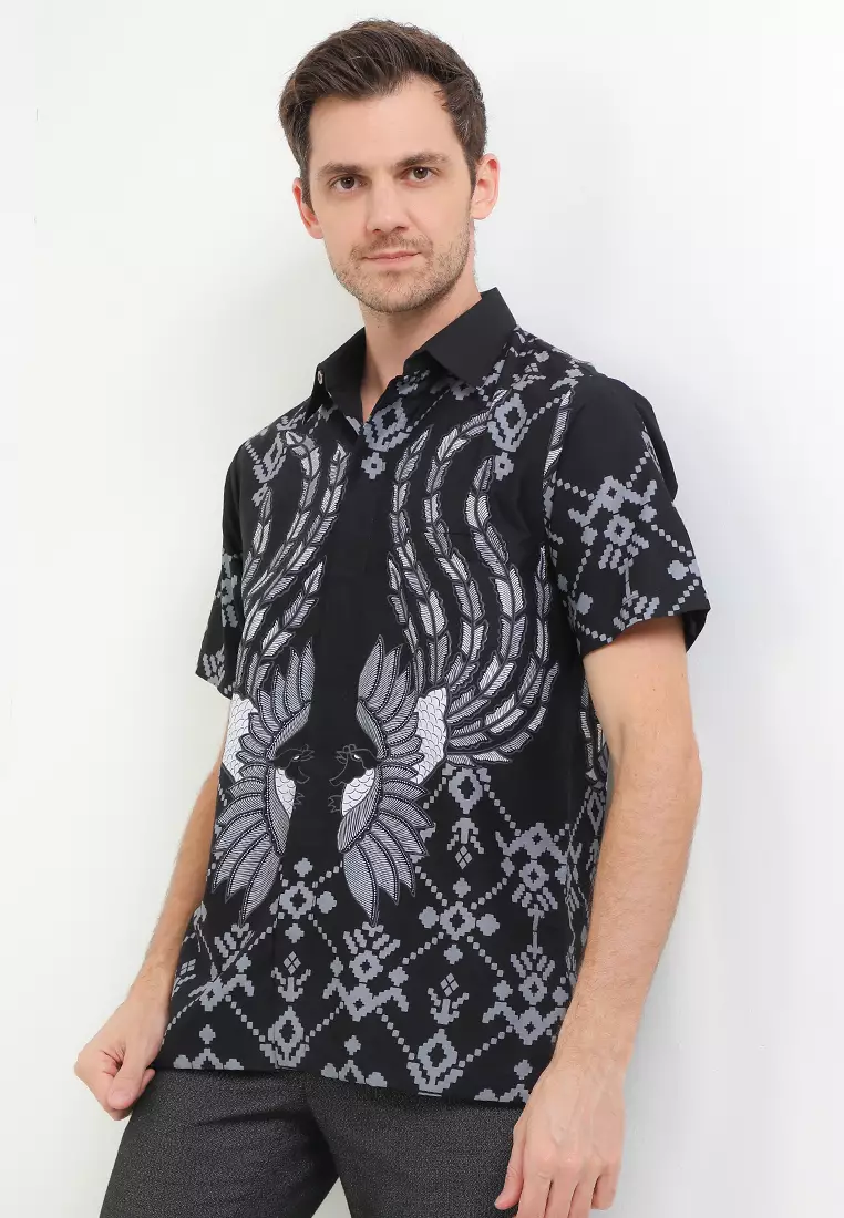 Hem Batik Pendek Lengan Pria Furing Octavian Black