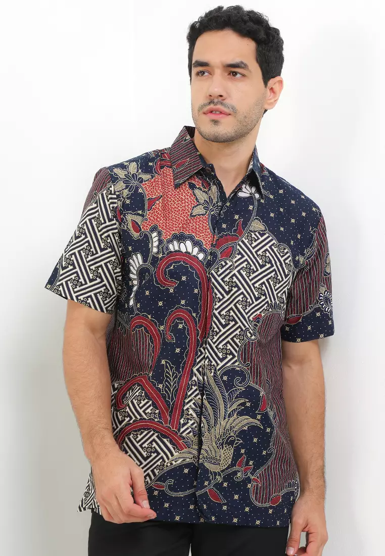 Rianty BatikHem Kemeja Lengan Pendek Reguler Fit Erland Katun Premium Navy549900.00329940.00