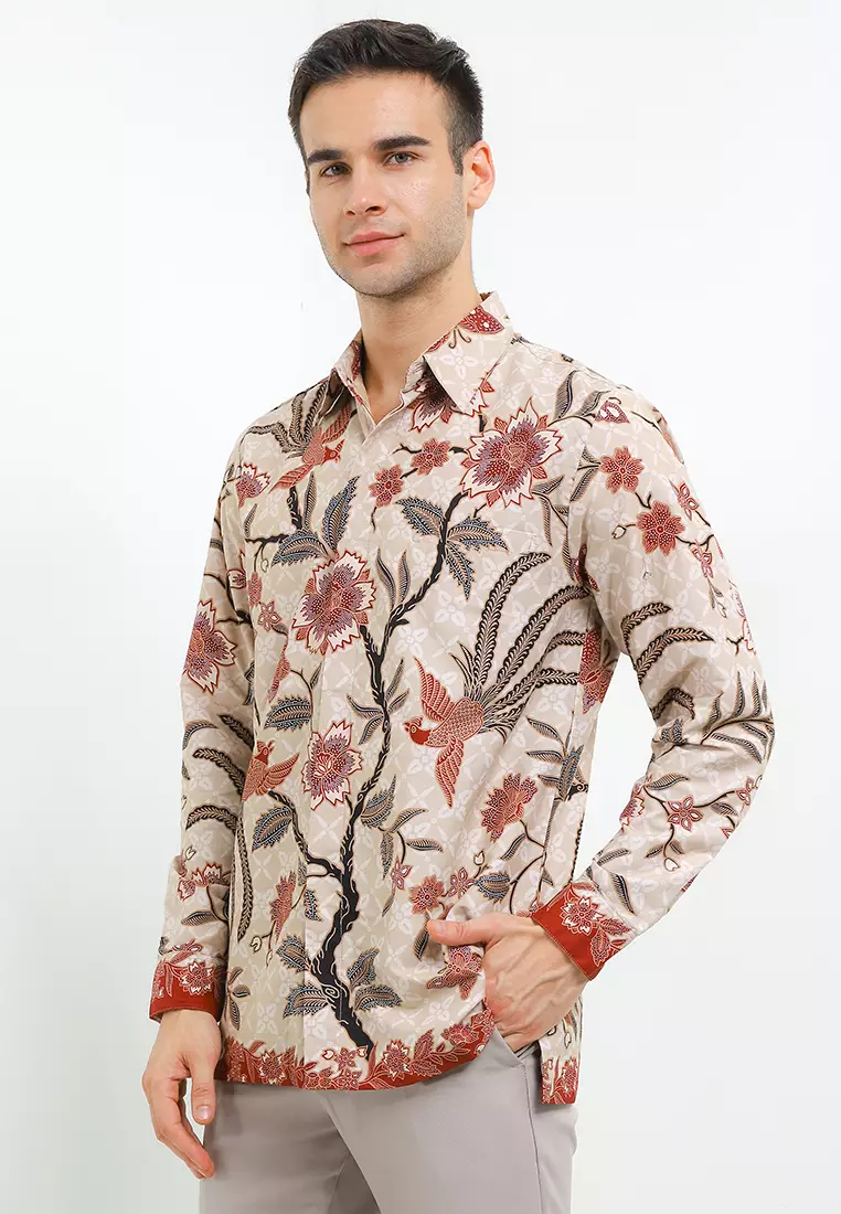 Kemeja Pria Lengan Panjang Batik Furing Cavero Cream