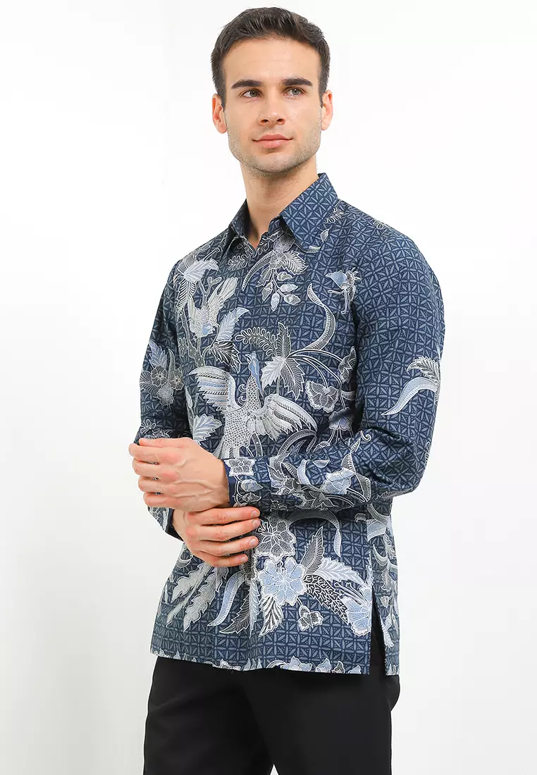 Kemeja Pria Lengan Panjang Batik Furing Jennio Navy