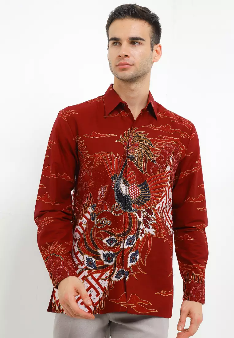 Kemeja Pria Lengan Panjang Batik Furing Prada Jonas Red